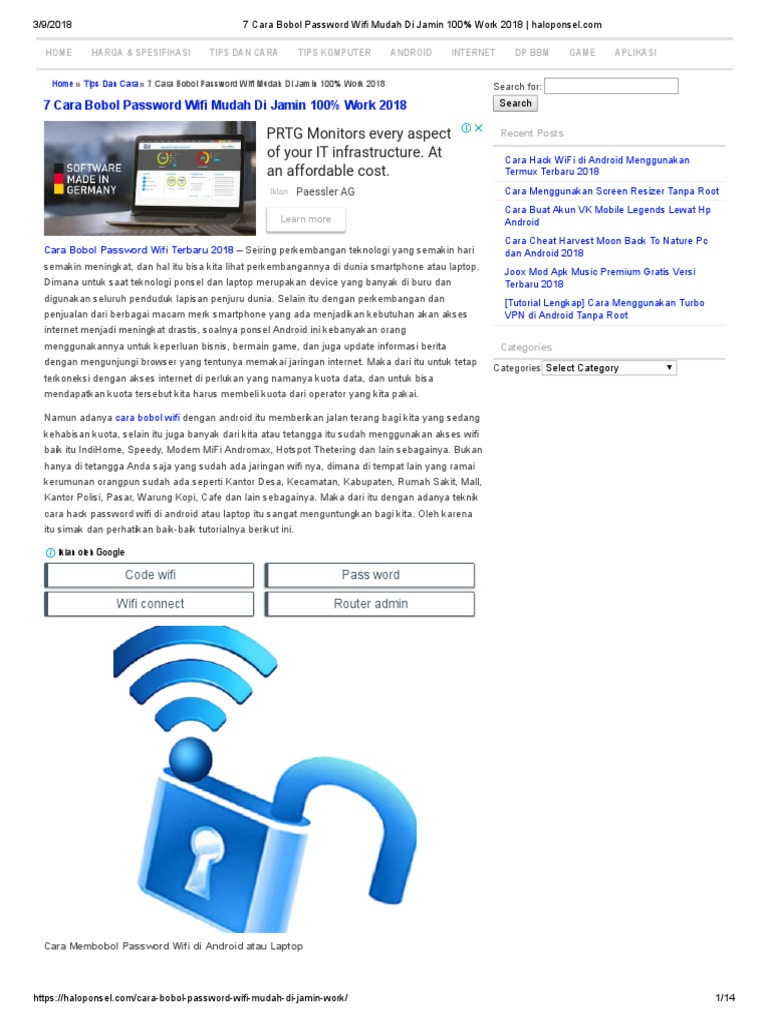 Mar 29, 2021 · dari 4 cara bobol password wifi indihome 2021 diatas, silahkan anda tentukan sendiri ingin mencoba cara bobol wifi id speedy indihome, cara bobol wifi di android ataukah cara bobol wifi menggunakan laptop windows 7, windows 8, dan windows 10.